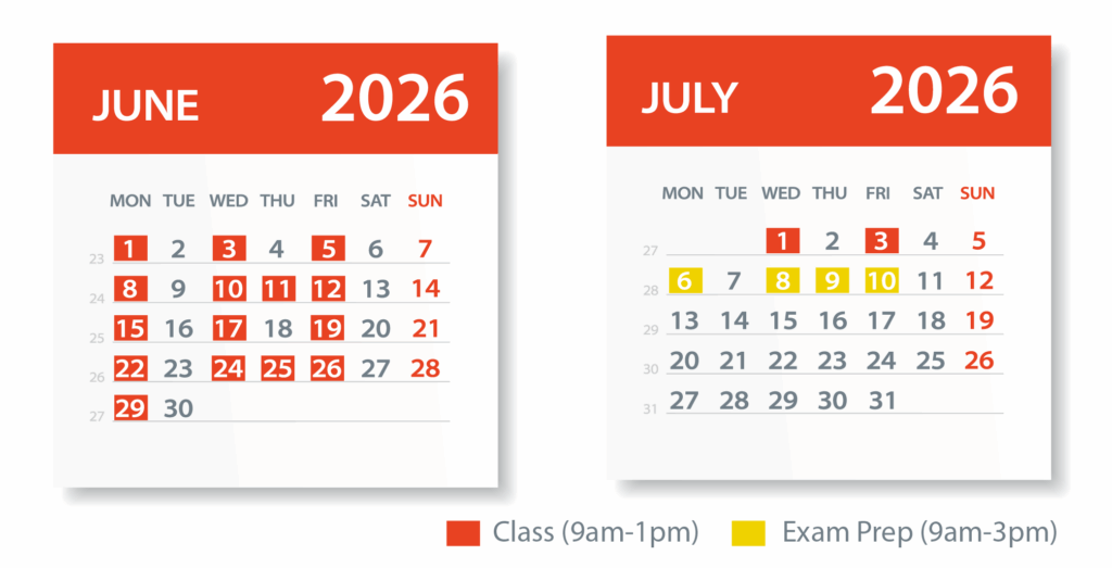 The course includes tuition, books, and all other necessary materials to complete the course and exam preparation.